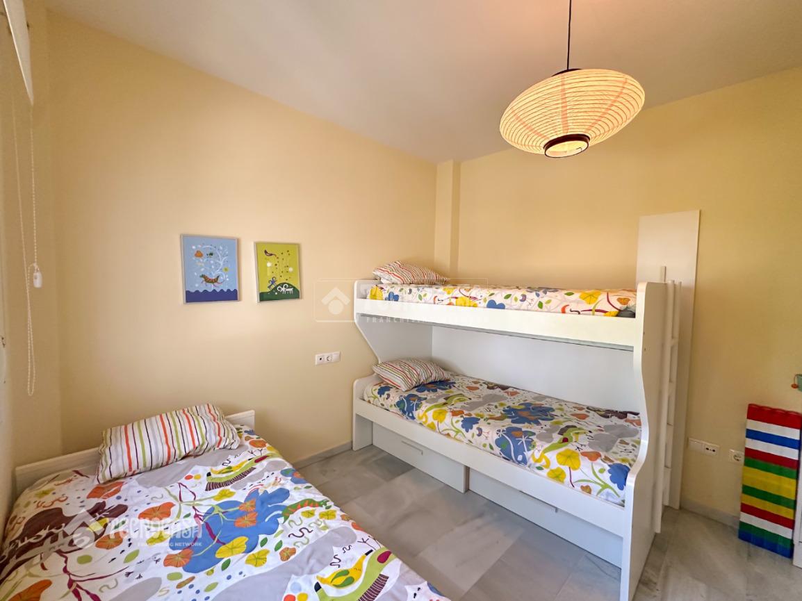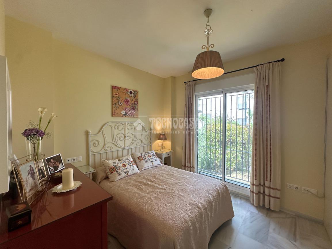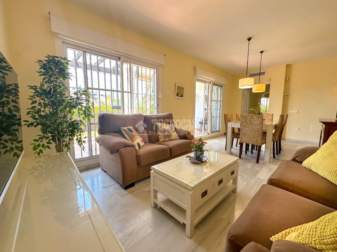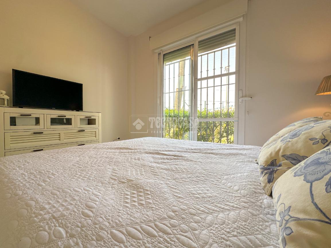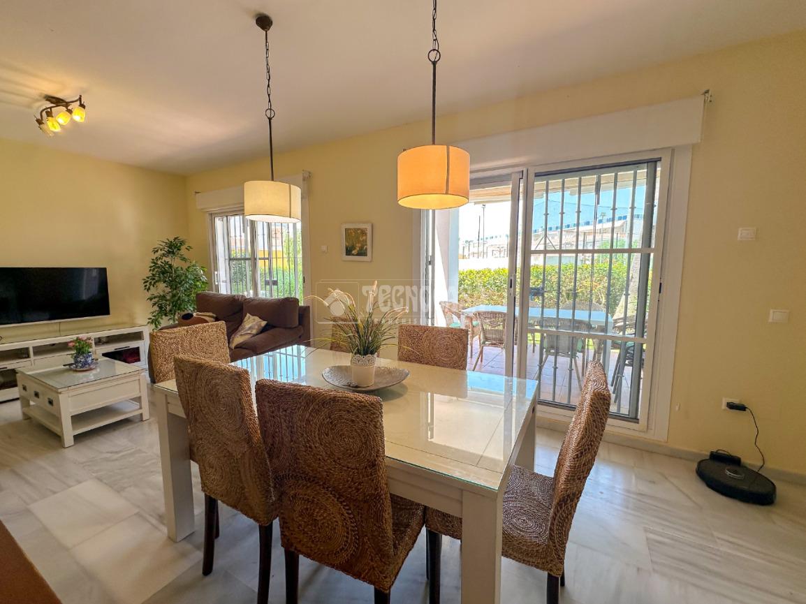 En Costa Ballena, de RECIÉN CONSTRUCCIÓN, situada en el residencial de JARDINES DEL INFANTE, con DISPONIBILIDAD INMEDIATA y todo en primeras calidades, carpintería exterior climalit y domótica. La vivienda se distribuye en salón con salida al jardín que tal y como está situado queda muy independiente del resto de viviendas. Se distribuye en 3 habitaciones dobles, todas con armarios empotrados, cocina independiente con lavadero y salida a un patio interior. Incluye dos plazas de garaje para coche grande y trastero. El residencial dispone de zonas comunes con piscina y pádel.