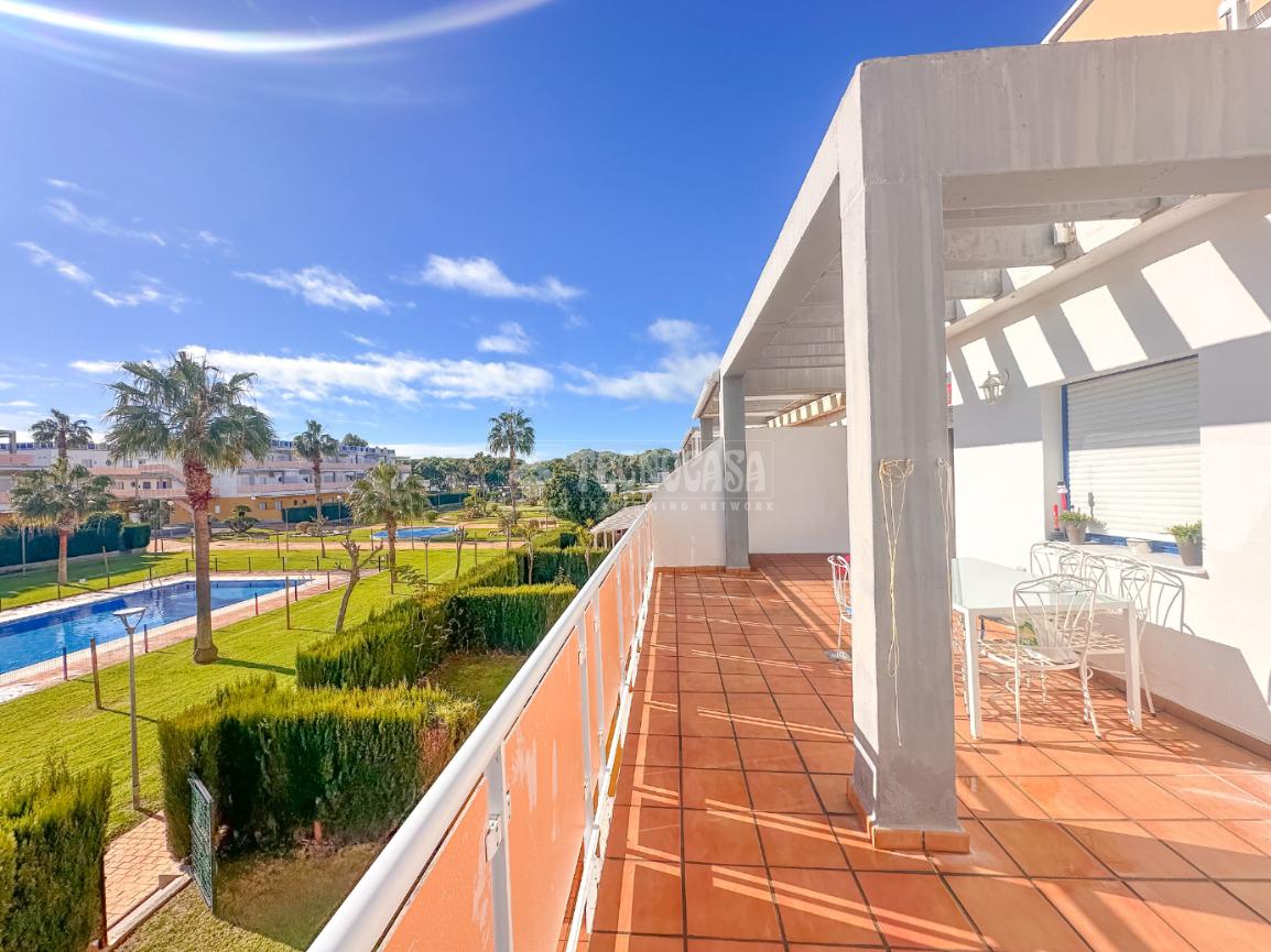 En Costa Ballena, en el residencial de las Tres Piedras, amplia vivienda de excelente orientación y con terraza de 40mts², 2 baños y cocina equipada. La vivienda se encuentra en perfecto estado, justo para entrar a vivir. Cuenta de excelentes calidades en cuanto acabados así como de carpintería exterior e interior de la vivienda. Cuenta de amplio armarios empotrados en ambas habitaciones, así como plaza de garaje subterránea y trastero. El residencial cuenta de amplias zonas comunes que incluyen instalaciones de pádel, tenis de mesa, parque infantil, mini golf, y 2 piscinas ( una para adultos y otra para los más pequeños). Se encuentra a pocos minutos de la playa en plena zona de recién construcción.