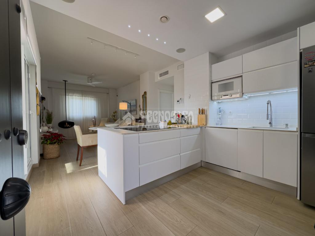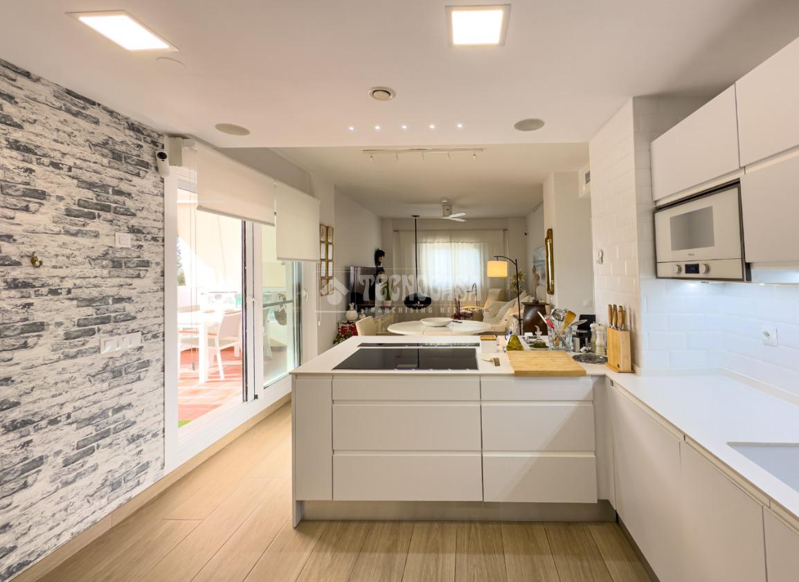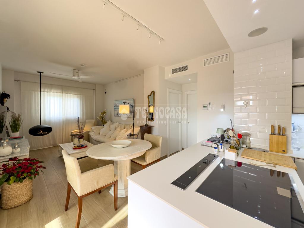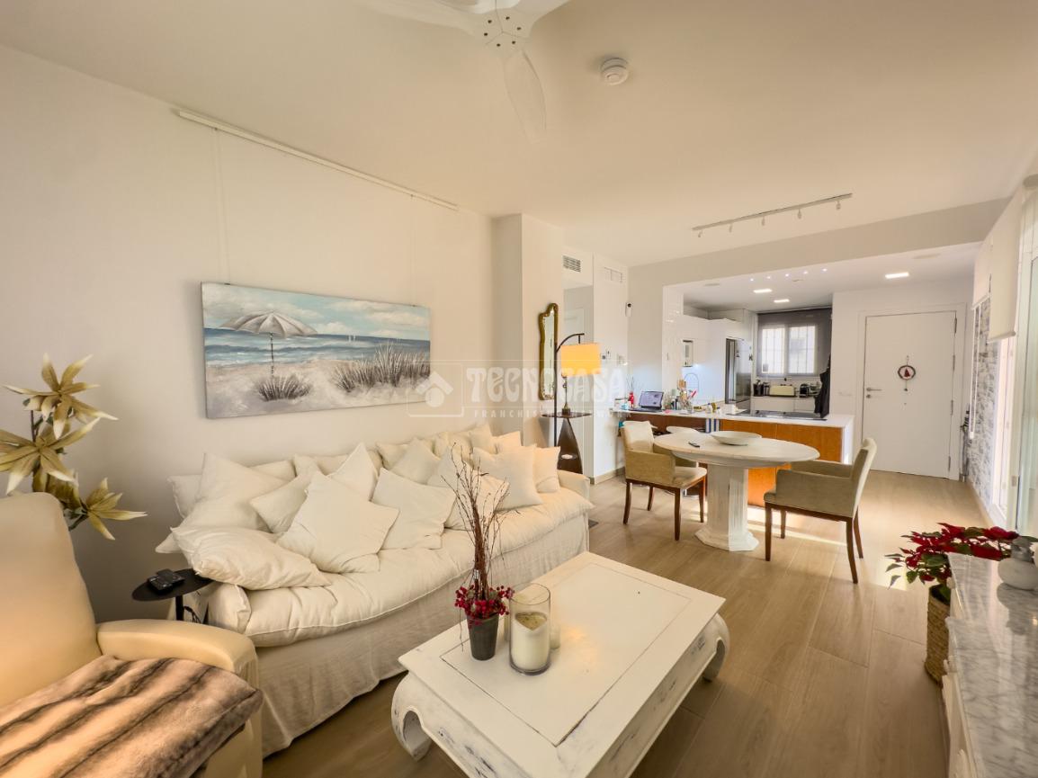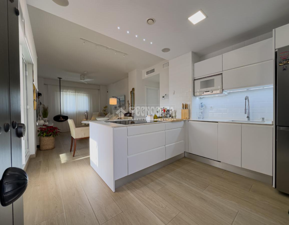 En Costa Ballena, ÁTICO de recién construcción en el residencial de JARDINES DEL LAGO, se distribuye en 2 dormitorios, 2baños, terraza y 2 plazas de garaje más trastero. La vivienda cuenta de 3 orientaciones por lo tanto dispone de luz durante todo el día. Además de su exterioridad y su orientación cuenta con unas inmejorables vistas a los jardines y lagos. Dentro del residencial su ubicación es una de las mejores porque queda completamente independiente sin colindar con vecino alguno, por lo que le confiere de tranquilidad todo el año, ya que no tiene ni vecinos arriba ni junto a su terraza. La vivienda además de ser de recién construcción, cuenta de mejoras hechas lo que hace que sea aún más exclusiva. Se distribuye en: entrando a mano derecha tiene la cocina con estupendos acabados abierta al salón con vitro y campana extractora tipo 'downdraft', cuenta de 2 ventanas y salida a la terraza. La zona exterior dispone de varios toldos de palillería y otro vertical dejando una parte para poder disfrutar verano e invierno y otra parte completamente exterior donde se sitúa la barbacoa. Los dormitorios son dobles, con armarios empotrados y vestidos, en cuanto a los baños ambos son completos con plato de ducha y mueble de lavabo de diseño minimalista.
