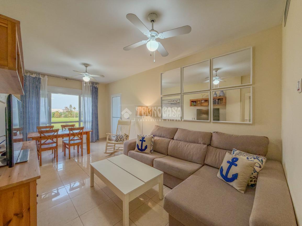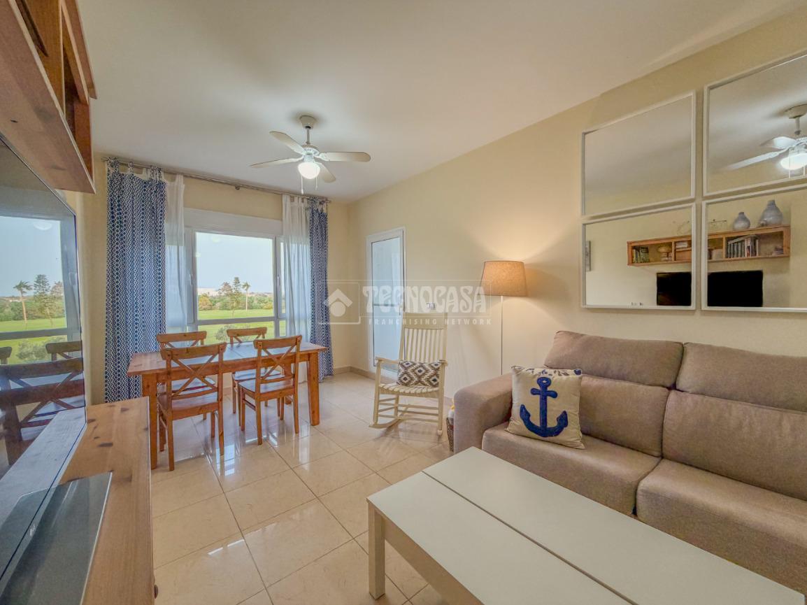 En Costa Ballena en la zona golf, descubre esta amplia vivienda ubicada en el exclusivo residencial Bahía Golf. Con una superficie de 115 m² construidos, este piso cuenta con una terraza perfecta para disfrutar de las impresionantes vistas al campo de golf. El luminoso salón se conecta con la terraza, creando un ambiente ideal para relajarse o recibir a amigos y familiares.
