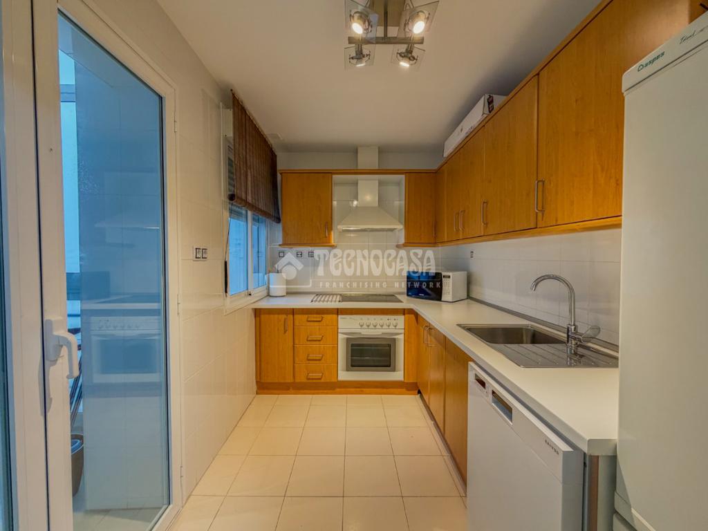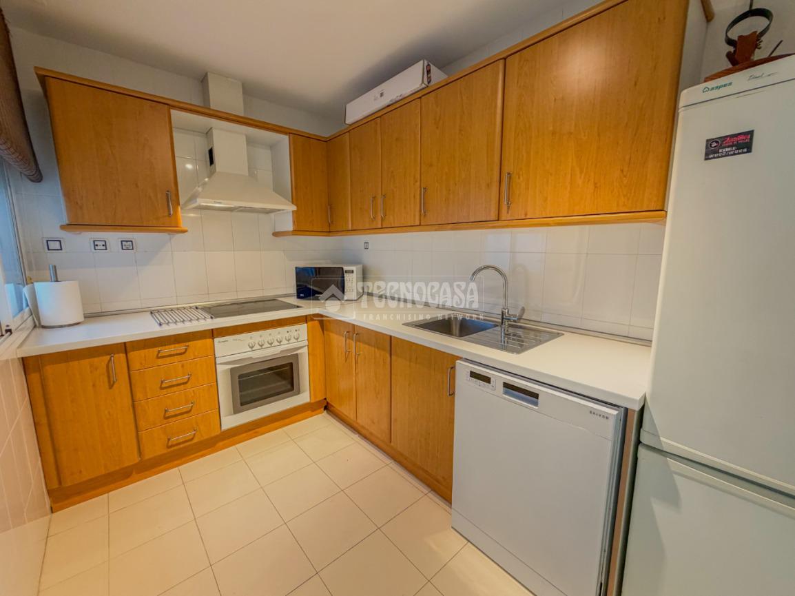 La distribución incluye dos dormitorios dobles con armarios empotrados, garantizando espacio y comodidad. Además, dispone de dos baños completos, uno con bañera y otro con ducha, adaptándose a todas las necesidades. La cocina está equipada y cuenta con un práctico lavadero, facilitando las tareas del día a día.